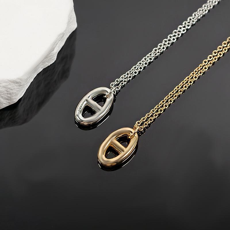 Pig Nose Polished Necklace: Women's Simple Design Clavicle Pendant - Elegant Gift for Her