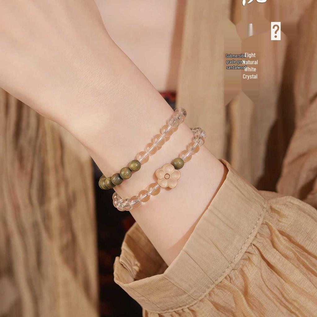 Chinese Green Sandalwood Peach Blossom Rosary: Love-Attracting Retro Buddhist Beads Jewelry