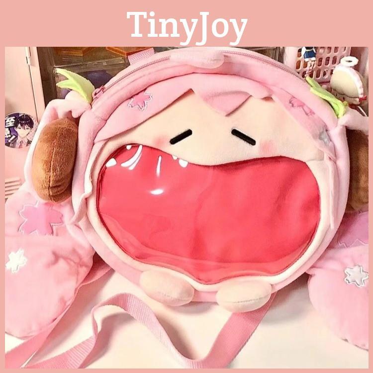 Hatsune Itabag Pink Plush Tote Backpack Floral Design Girls Outings