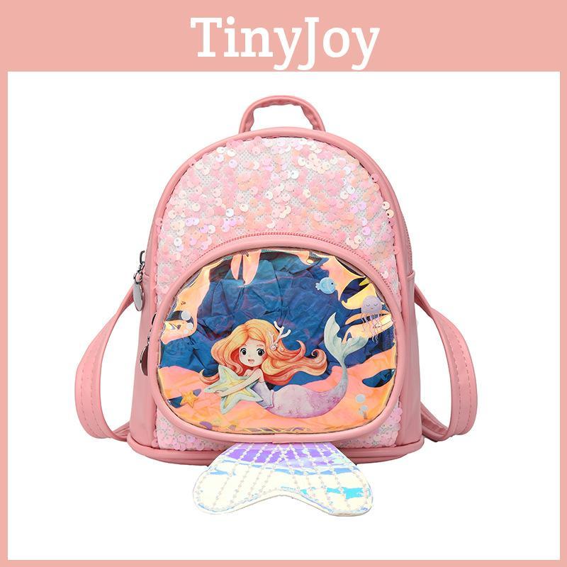 Glitter Mermaid With Small Tail Childrens Backpack Adjustable Shoulder Straps