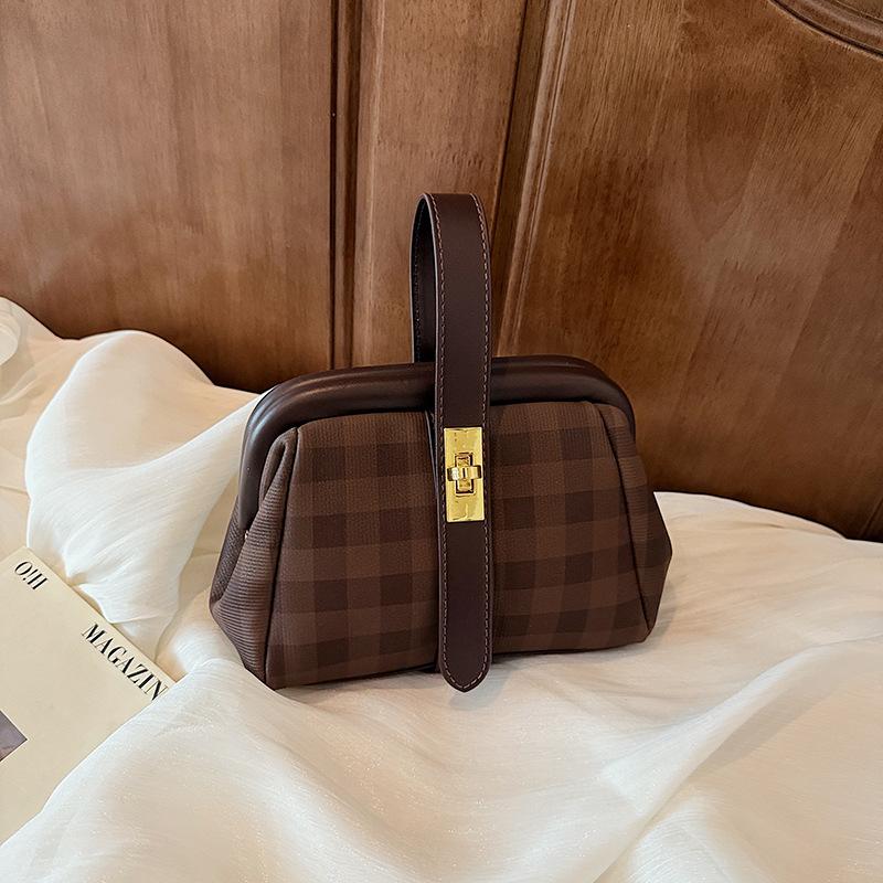 Retro Simple Handbag Women's Small Bag 2025 New Plaid Clip Bag Versatile Messenger Doctor Bag