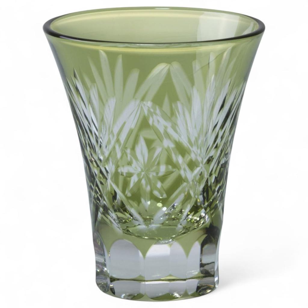 J-kitchens Mizukage Kiriko Glass Cup, Sake Cup, Diameter 6.2 X 7.8cm, 60cc, Star Fan, Green, Current Model