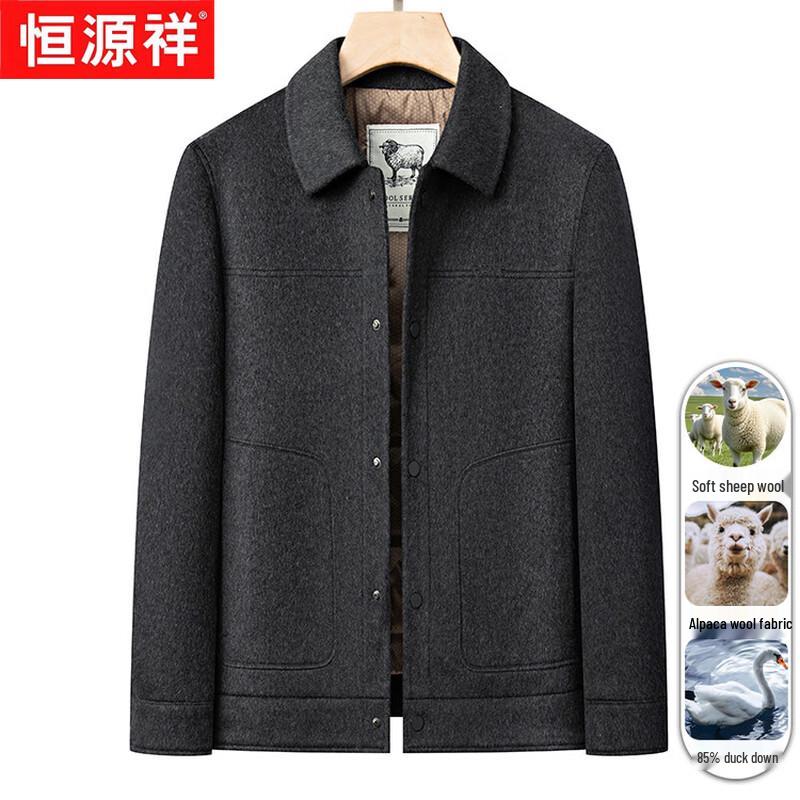 Hengyuanxiang Men's Double-Faced Wool & Alpaca Blend Down-Lined Winter Coat
