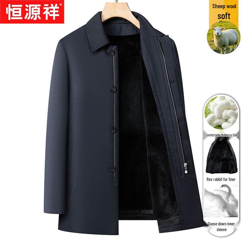Hengyuanxiang Men's Wool-Blend Lapel Button Executive Jacket with Detachable Goose Down Liner
