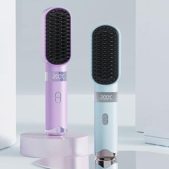 This Portable Wireless hair straightening brush offers effortless styling anytime, anywhere. Lightweight and cordless, it eliminates tangled wires, making it perfect for on-the-go touch-ups during travel or busy days.