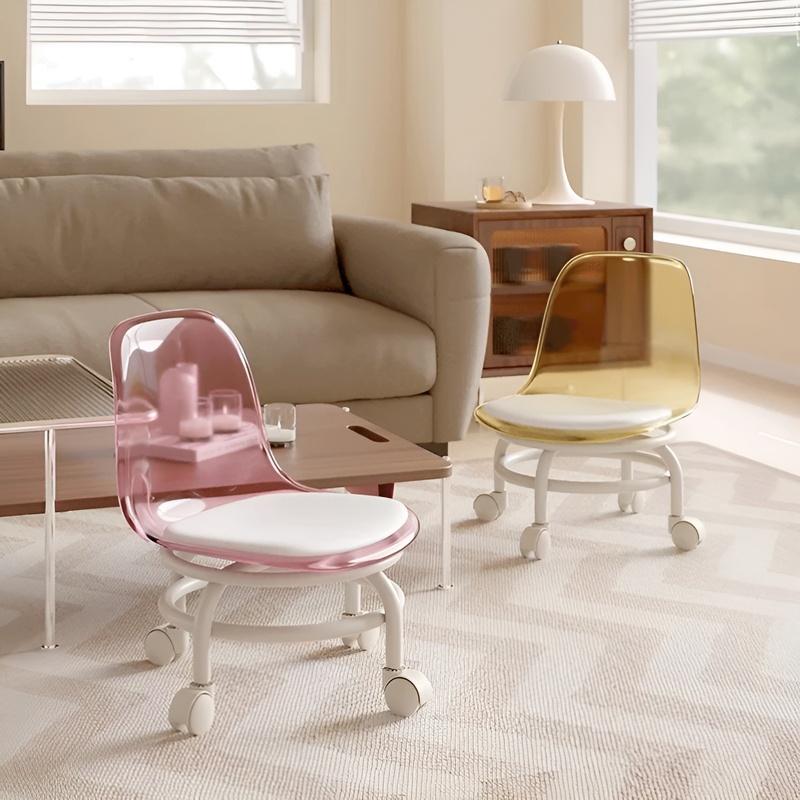 Household Transparent Acrylic Small Stool with Universal Wheel Toddler Stool Lazy Backrest Roller Skating Stool