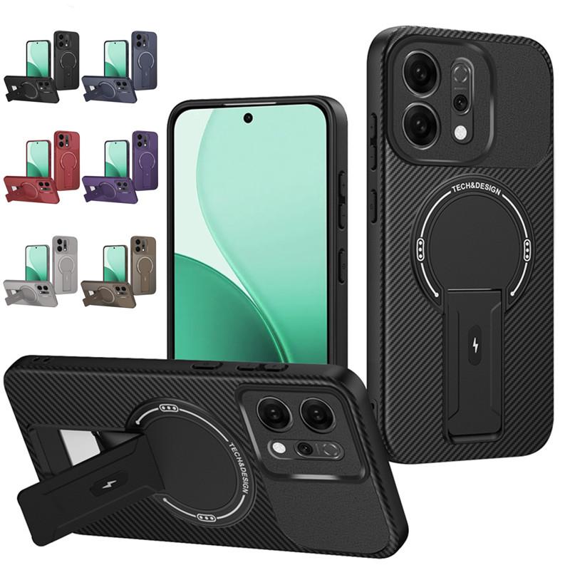 Carbon Fiber Pattern Armor Case For OPPO Reno 14 Pro Reno14 5G Cover Magnetic Wireless Chraging Fold Stand Shell Fundas