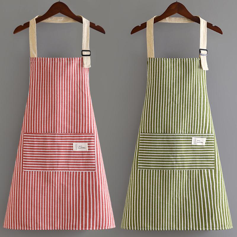 Lightweight & Comfort Sleeveless Apron, Breathable Cotton Linen With Vertical Stripe For Professional Or Home Use