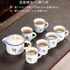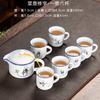 Household Tea Cup Set, White Porcelain, Kung Fu Tea Set, Ceramic Teapot with Handle, Zen Inspired Cartoon, 1 Pot, 6 Cups