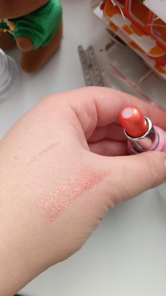 This lipstick is simply stunning! Its texture is pleasant and feels light on the lips, not sticky at all, which I especially loved.. The glitter gives a very beautiful shimmering and shiny touch, and it creates a unique metallic look that still remains delicate and feminine. The pink color with a pearl hue blends stunningly with daytime makeup and is also suitable for the evening.. Long-lasting – doesn't need to be reapplied every moment, and it doesn't smudge easily. Comes in a convenient-to-use package, and the application itself is very precise thanks to the applicator.. Perfect for those who love to upgrade their look with a little sparkle and glitter. Definitely adds style to any outfit!