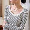 Striped Bottoming Shirt Women's New Women's Clothing Thin Big Round Neck Long-sleeved T-shirt Elastic Inner Waist Top