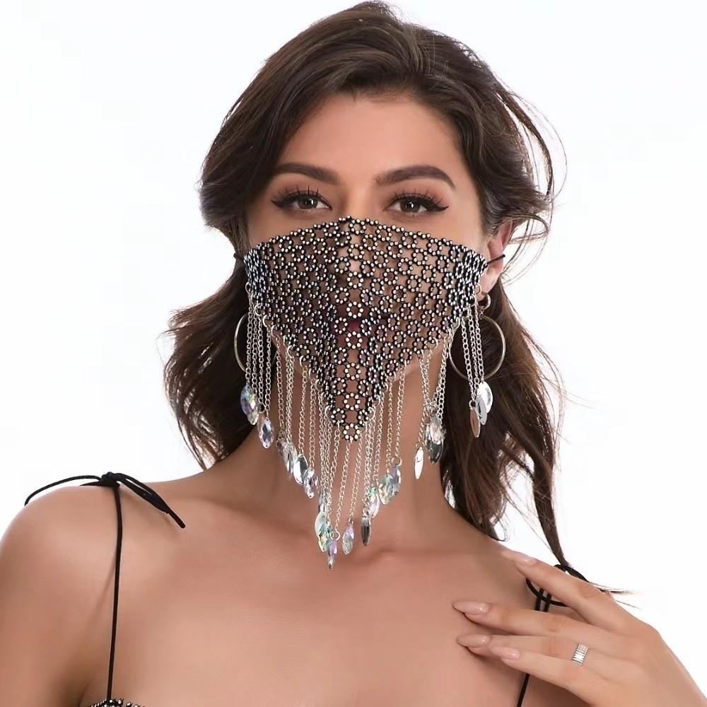 Tassel Face Cover Fishing Net Masquerade Mask Delicate Rhinestone Mask Dance Party