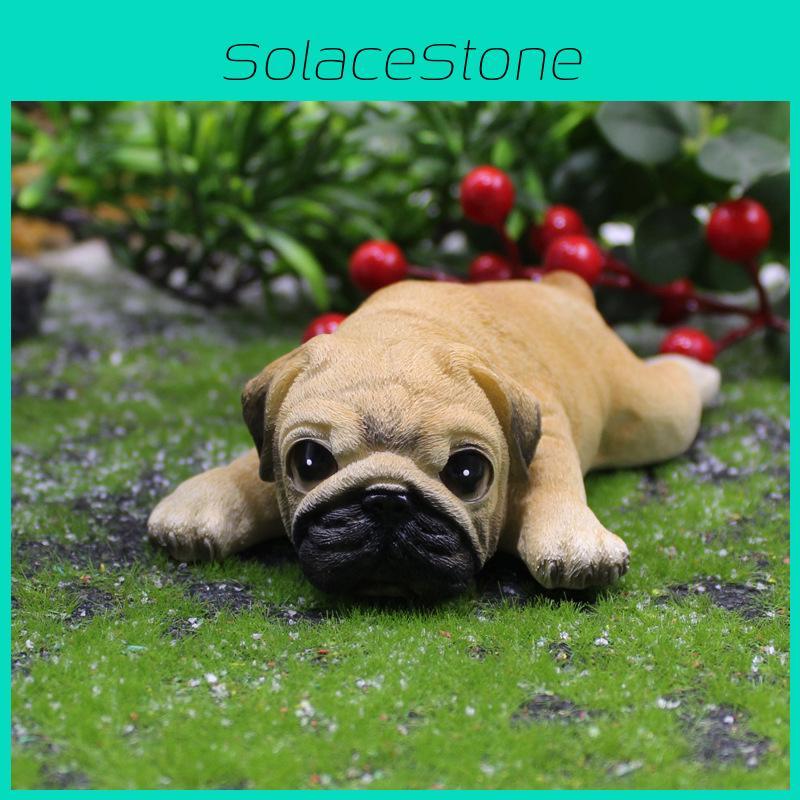 This resin dog figurine depicts a realistic pug in seated or lying postures, supporting detailed animal decorations and scene crafting, it offers durability and vivid detail. Ideal for car interior decor or miniature displays, it adds charm to various settings. Wipe clean with a damp cloth for maintenance.