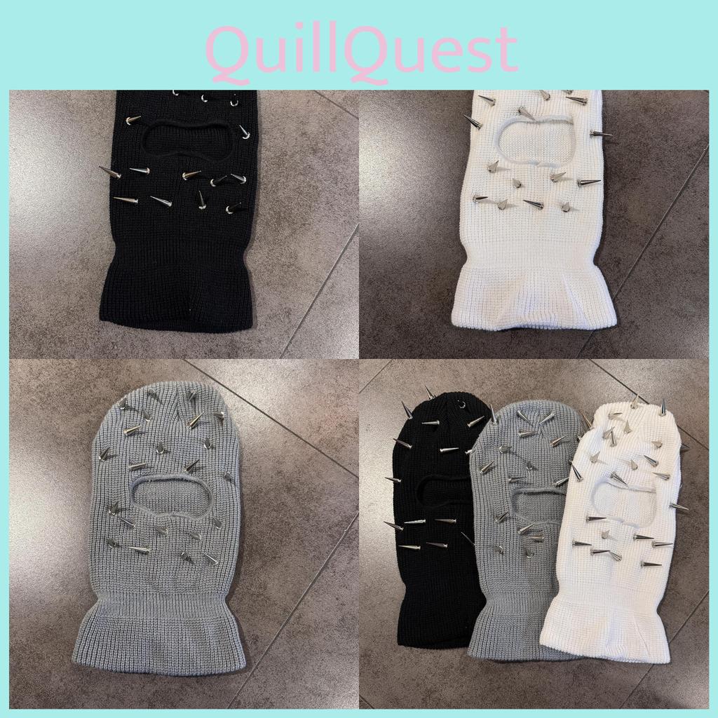 Funny Punk Rivet Design Knitted Headgear Face Mask Hat For Men Teens And