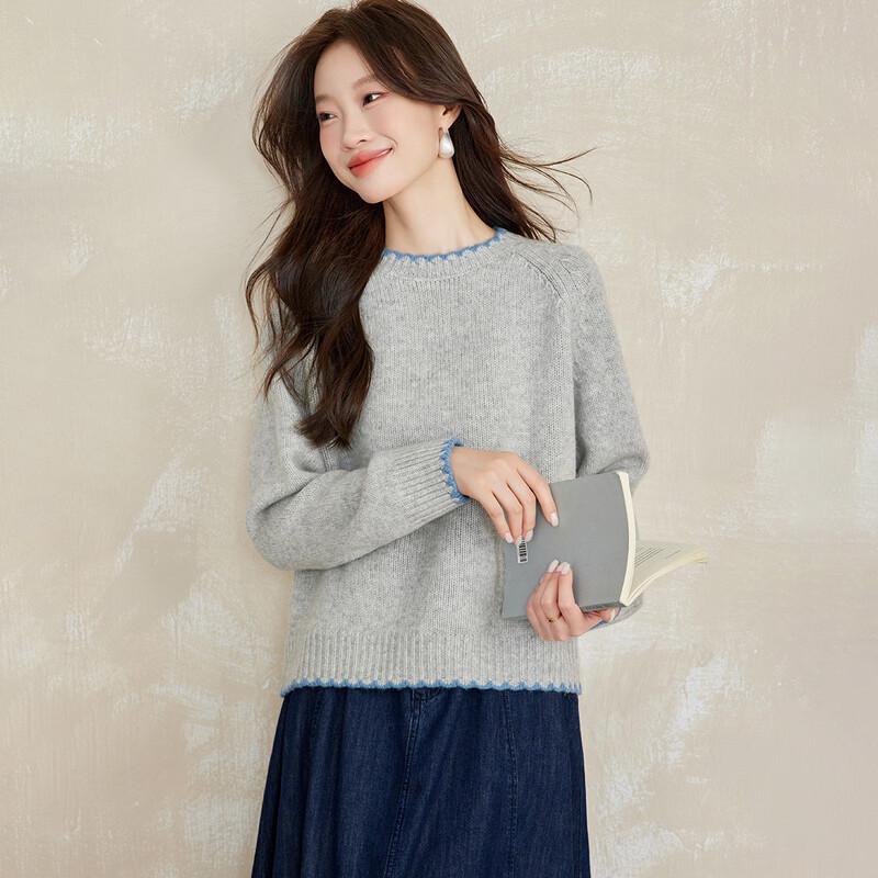 Srcr Women's 100% Wool Relaxed Fit Colorblock Sweater
