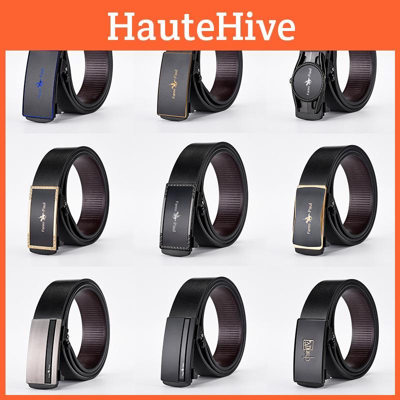 Mens Leather Real Dress Belt With Auto Buckle Metal Closure For Formal Events