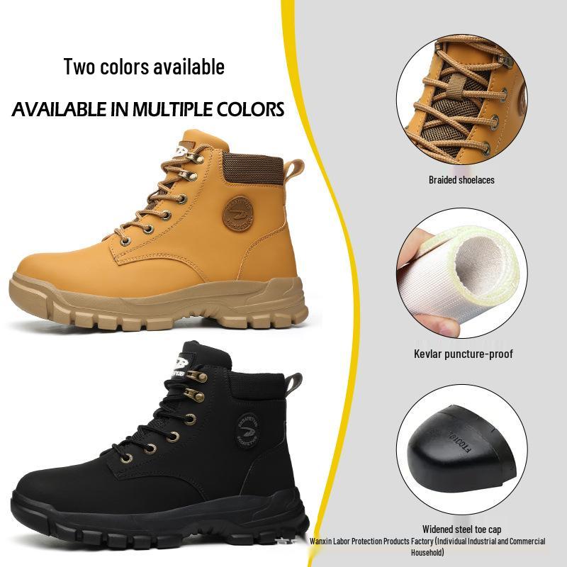 Four Seasons High-Top Steel Toe Safety Boots, Microfiber Leather, Anti-Slip, Anti-Smash, Anti-Puncture, Wear-Resistant, Comfortable Work Shoes.