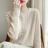 Wool Sweater Twist Knitted Cardigan Autumn Winter New Round Neck Solid Coat Top