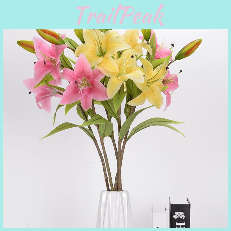 This artificial lily flower features soft PVC construction with a pouring process, offering a realistic appearance. it provides vibrant yellow, white, pink, or light pink blooms, ideal for home decor, wedding arrangements, or photography props. Easy to maintain, wipe clean with a damp cloth.