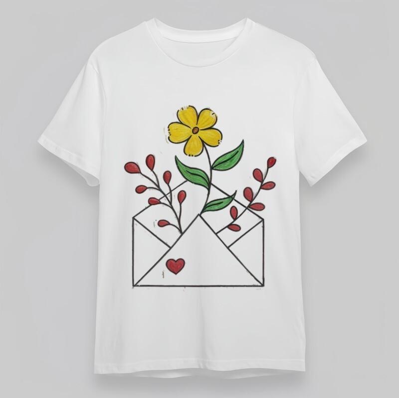 Women's Fashion Plus Size Classic T-Shirt Hand-Drawn Envelope With Blossom Tee