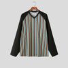 INCERUN Oversized Men V Neck Long Sleeve Striped Print Casual Loose T-shirts Tops