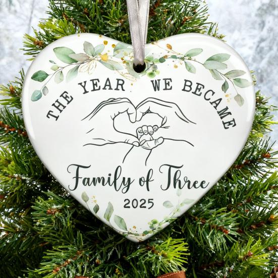 Yousheng The Year We Become Family of Three Ornament Heart Shaped Baby First Christmas Ornament New Mom And Dad Gifts for Parents