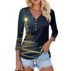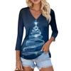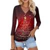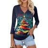 Women's Casual Fashion Sexy Comfortable Christmas Print V-Neck Button Three-quarter Sleeve Top