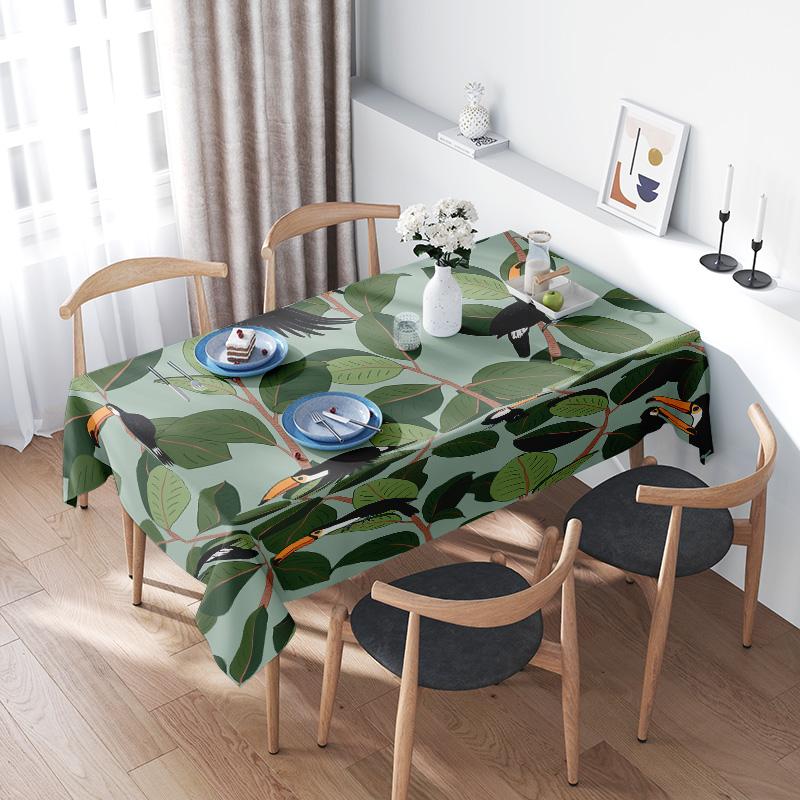 Outdoor Green Leaves TableclothBirds Print Dining Room Decoration Waterproof Non-slip Home Decor Cloth for Kitchen XXL