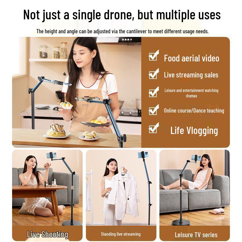 Multifunctional Floor & Bedside Mobile Phone Holder for Streaming, Overhead & Low-Angle Shots, Retractable Stand for Videos & TikTok