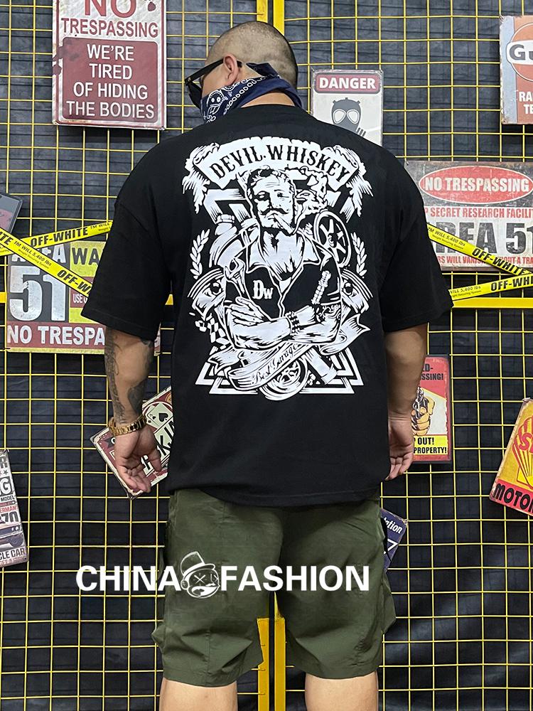 Nuclear Explosive Machine Repairman Large Format Full Back Printed Cotton Heavy Drop Shoulder Sleeve Large Size Black and White