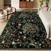 Dark Green Floral Carpet for Living Room Soft Non-Slip Machine Washable Floor Mats Botanical Print Indoor Nursery Bedroom Rug