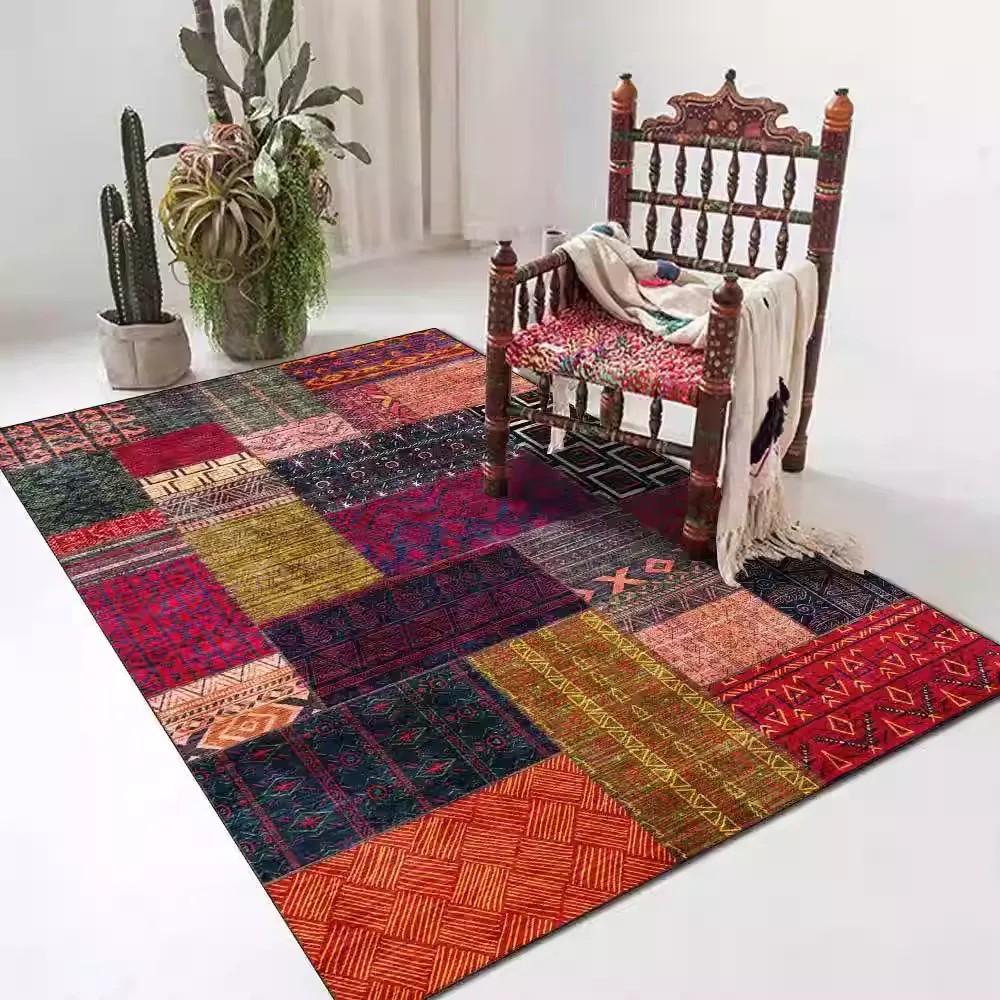 Bohemian Carpet for Living Room Coffee Table, Vintage Ethnic Style Floor Mat for Home, American Country Bedroom Bedside Rug