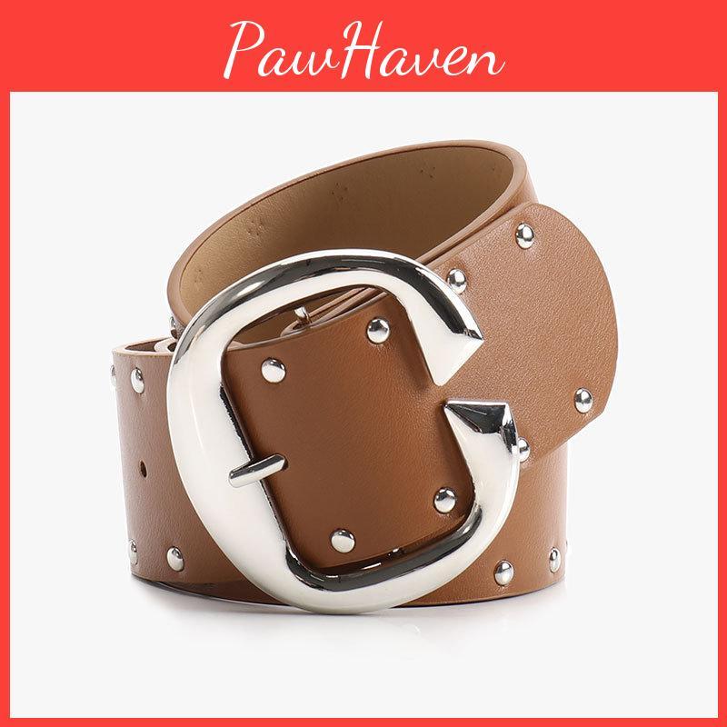 Inspired Hip Hop Women Leather Belt With Double Row Rivets And Large Buckle C