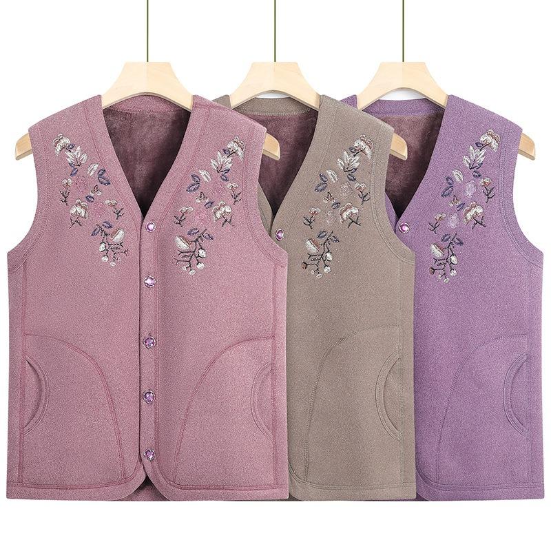 Women's Vest Autumn and Winter Clothing Fleece Warm Vest Old Lady Thickened Vest Cardigan Vest