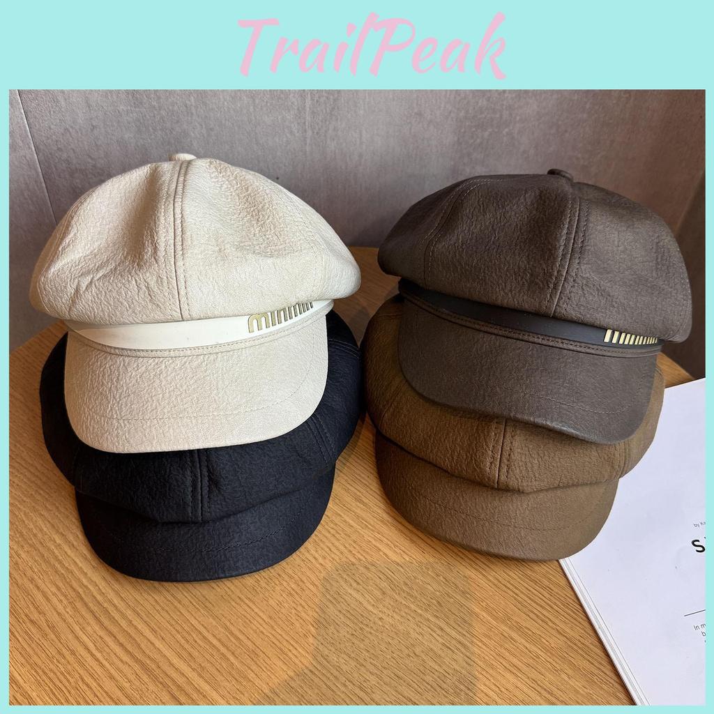 Letter Pu Material Curved Brim Octagonal Cap Cold Season Accessories Fashion