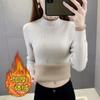 New Autumn and Winter Fleece Thickened Pullover Sweater with Women's Fashion Simple Integrated Fleece Semi-turtleneck Knitted Bottoming Shirt