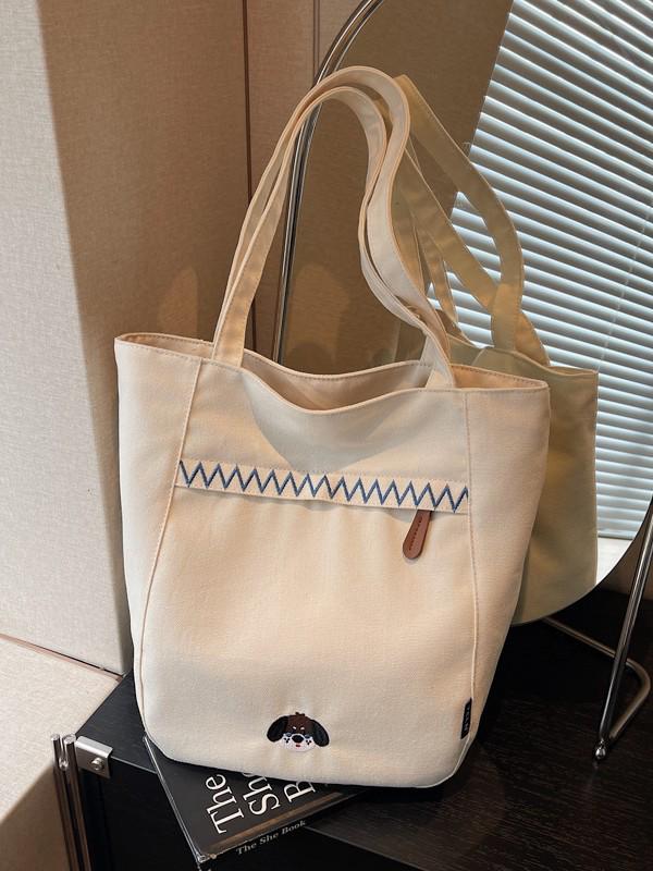 Casual Striped Embroidered Canvas Shoulder Bag - Autumn/Winter 2025 Trendy Student Design