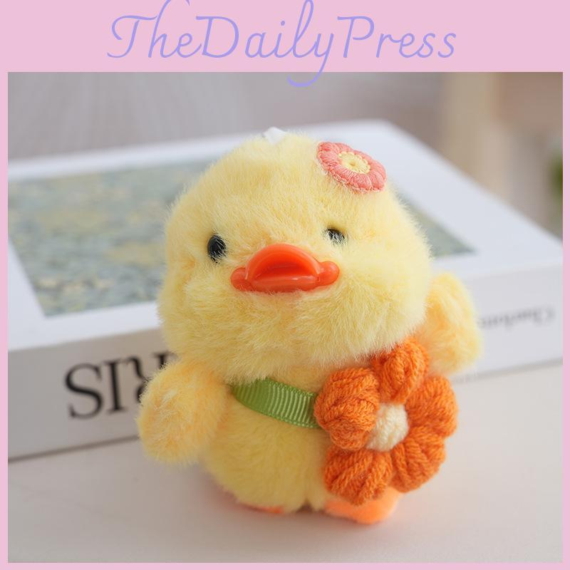 This plush duck keychain features a 10cm cute animal design made from soft PP cotton and plush material, offering a comfortable tactile experience. Available in vibrant color combinations like white sunflower, pink sunflower, and yellow sunflower, it combines durability and charm. Ideal for attaching to bags or keys, it adds playful personality to everyday accessories. Easy to clean with a gentle wipe.