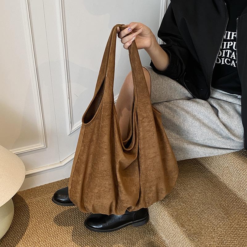 2025 Women's Retro Korean Large Capacity Suede Tote - Versatile Shoulder Bag for Commute