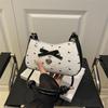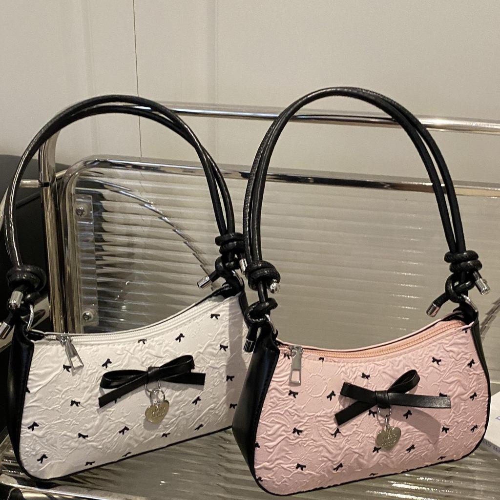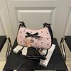 Korean Sweet Seersucker Bow Shoulder Bag, Women's Black & Pink Color Block Crossbody