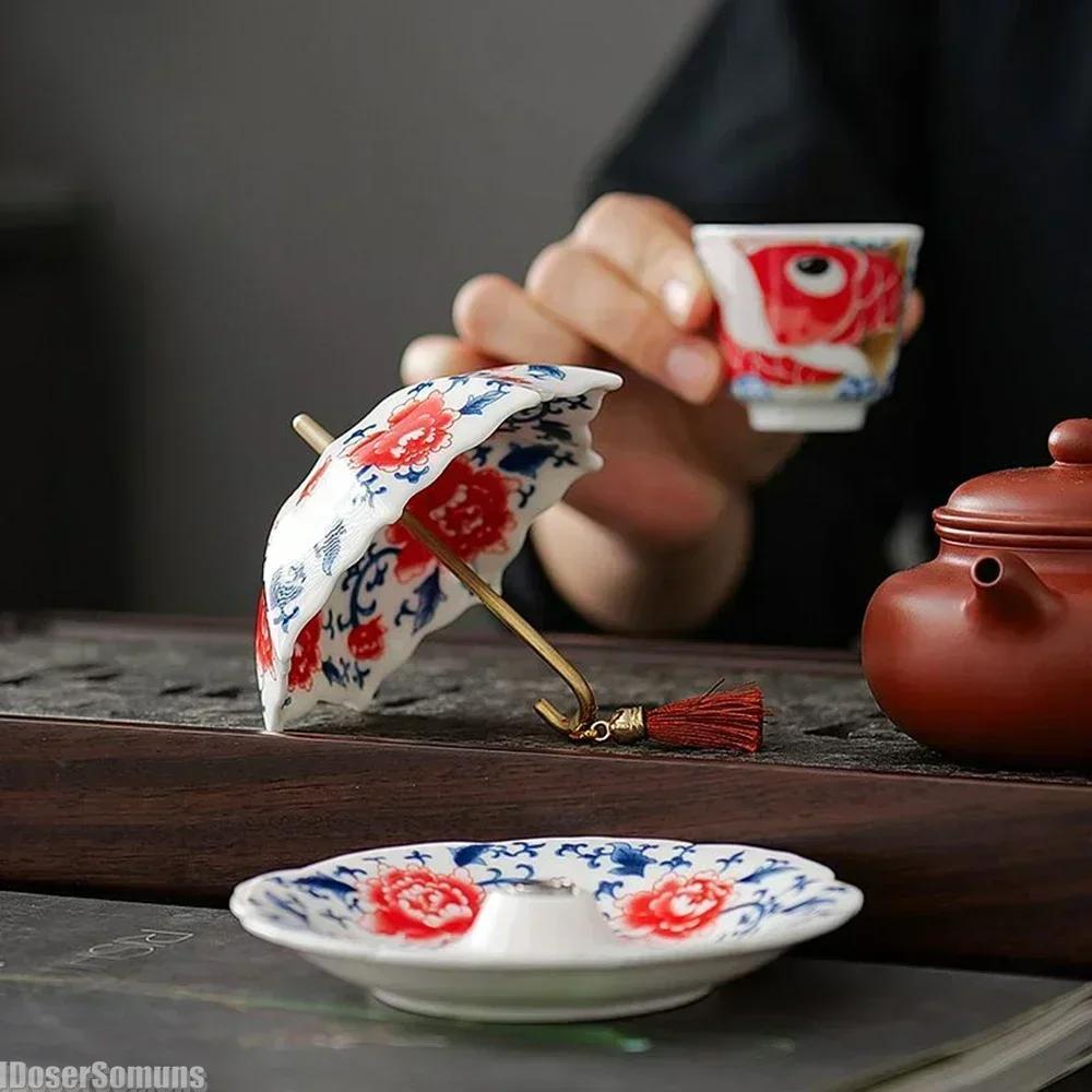 Creative Blue & White Umbrellas Tea Strainers Ornaments Ceramic Tea Filters Chinese Style Accessories Tea Table Decoration Gifts