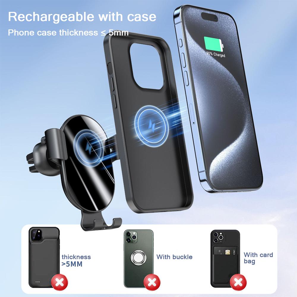 15W Wireless Car Charger Phone Holder-Gravity Mount/Auto-Clamp/Fast Charging/360° Rotation For iPhone/Samsung