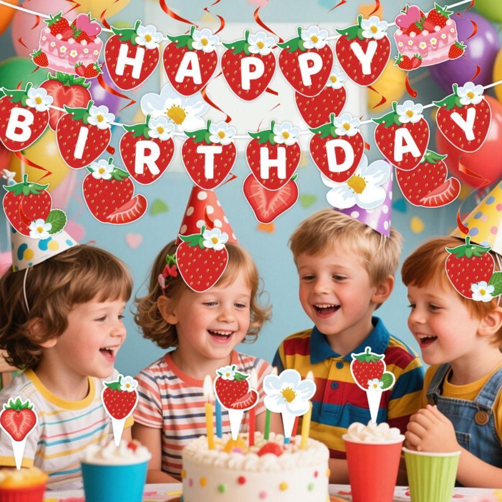Creative Strawberry Honeycomb Ornament Cartoon Strawberry Hanging Banners Birthday Decoration