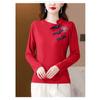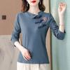 Women's Foreign T-shirt, Autumn Dress, Chinese Mother's Top, National Style, Long-sleeved Undershirt, Velvet Buckle