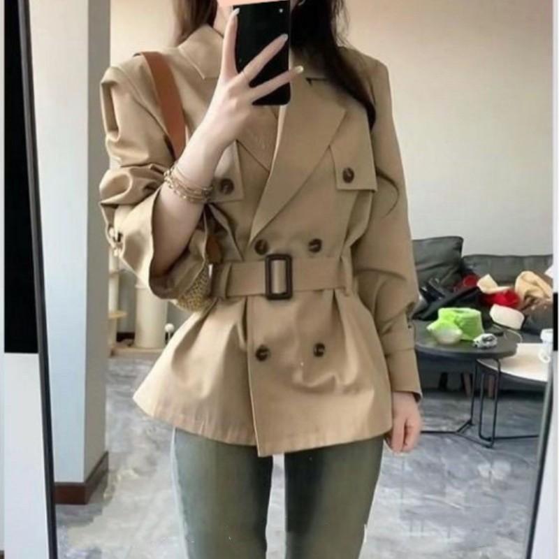 Women's Autumn and Winter Korean Windbreaker Temperament Waist Slim Double-breasted Lapel Jacket