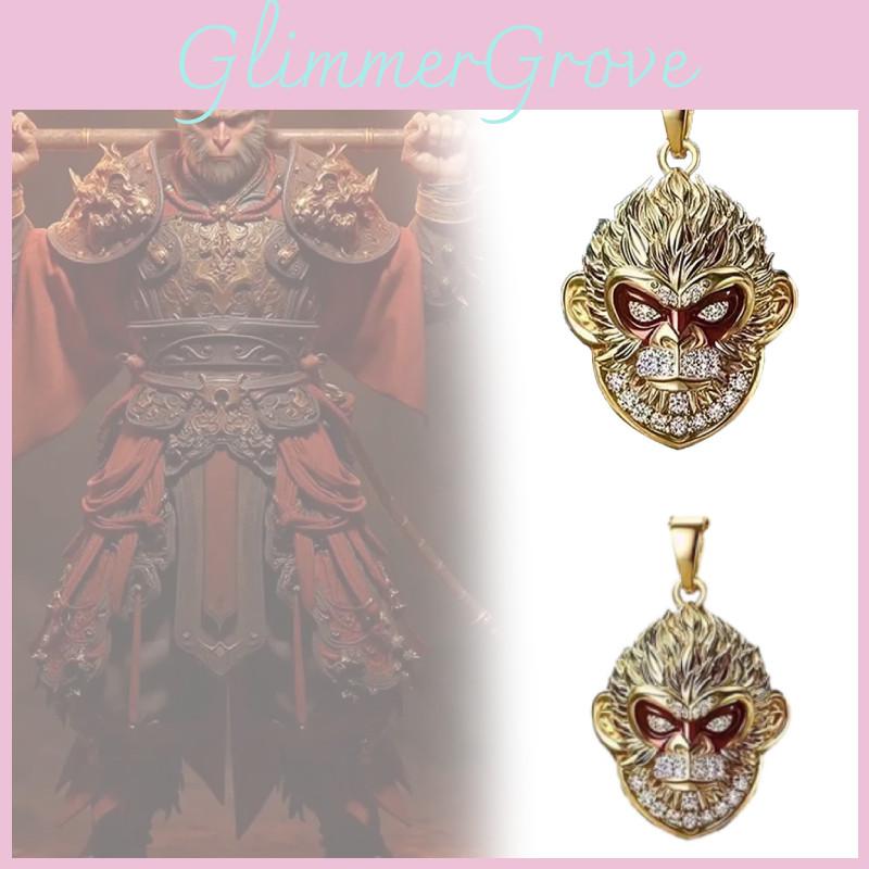 The pendant features a vibrant design of Wukong, highlighted by his iconic red eyes that exude power and mischief. Whether you choose the single pendant or the version complete with a cross chain, this necklace embodies a sophisticated yet playful style, appealing to gamers and fashion enthusiasts alike. The cartoonish depiction of Wukong may be whimsical, but its craftsmanship speaks of quality and elegance, making it a versatile piece suitable for both casual outings and more formal events.