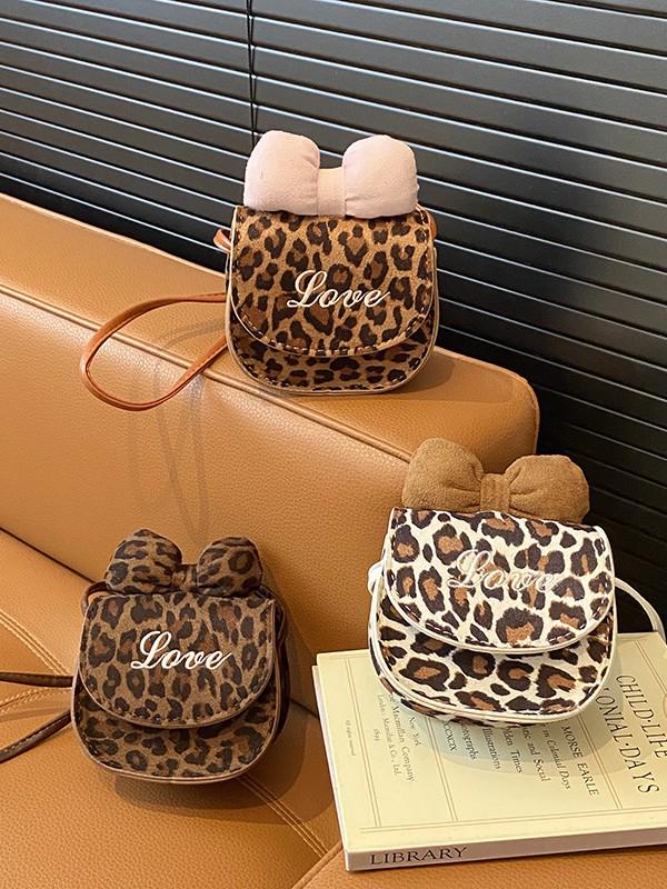 Leopard Print Cute Bow Princess Crossbody Bag for Girls - Mini Square Shoulder Bag Accessory