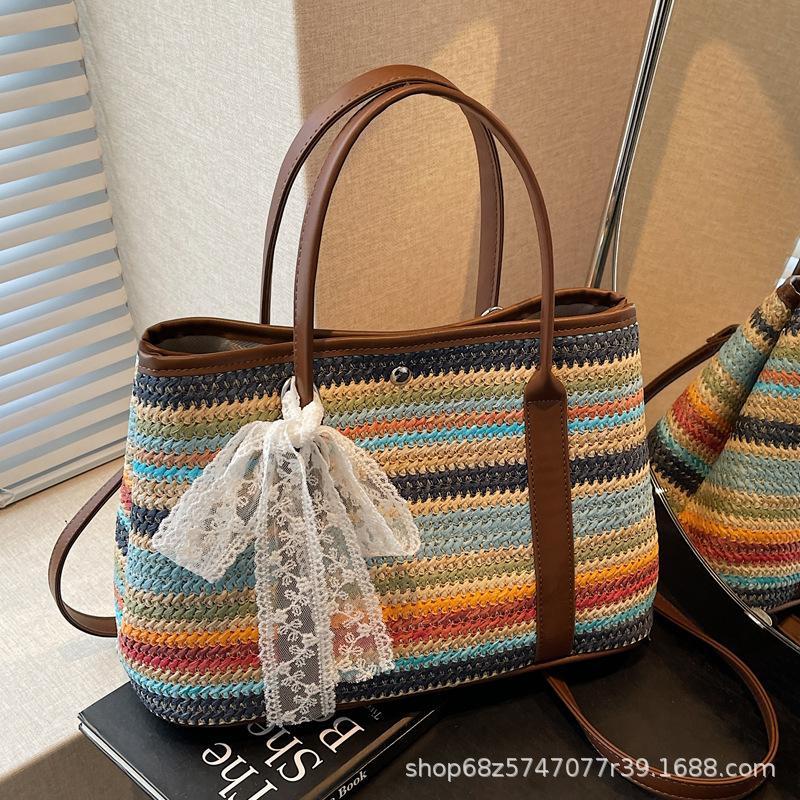 Beach Bag Women's 2025 New Spring and Summer Fashion Popular Shoulder Bag Large Capacity Woven Bag Commuter Tote Bag