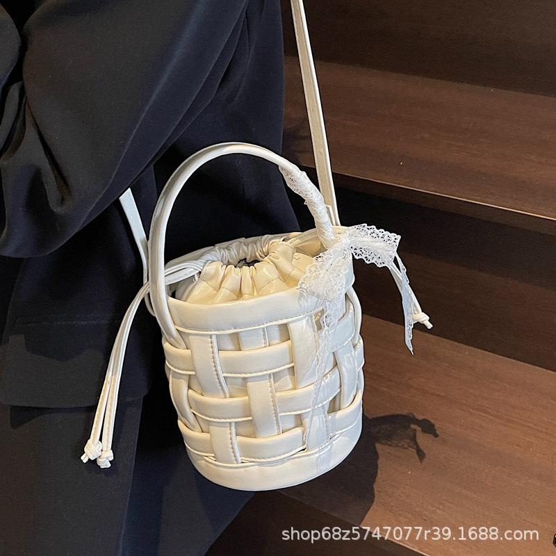 2025 Spring and Summer New Woven Niche Hand Basket Fashionable Versatile Single Shoulder Crossbody Premium Sense Commuter Bucket Bag