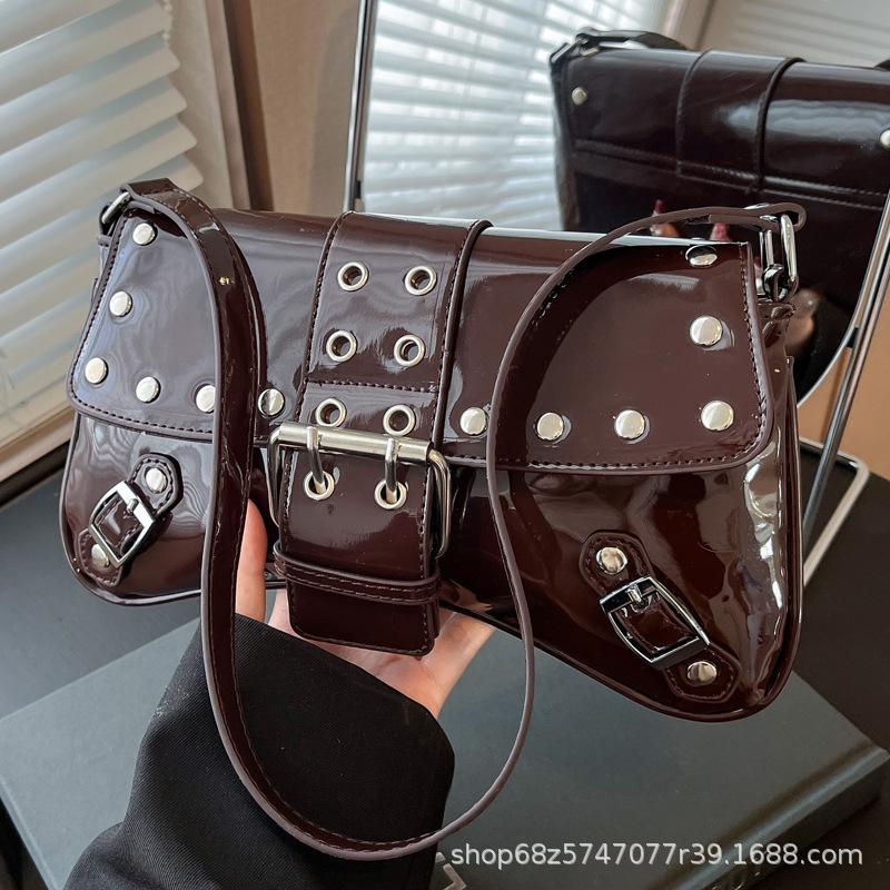 Hot Girl Style Rivet Underarm Small Bag for Women 2025 New Fashion Niche Design Commuter Bag Patent Leather Shoulder Bag